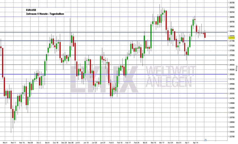 Der Donnerstag beginnt um 01:50 Uhr mit den japanischen Dienstleistungspreisen im März. Der Index der Frühindikatoren für den März aus China wird um 04:00 Uhr veröffentlicht. In der europäischen Session wird um 08:00 Uhr der Schweizer Handelsbilanzsaldo für den März ausgegeben. Um 08:45 Uhr folgt das französische Unternehmensvertrauen von Insee. Ein Highlight des Tages ist der deutsche ifo-Geschäftsklimaindex für den April um 10:00 Uhr. Möglicherweise hat sich dieser leicht abgeschwächt. Für 11:00 Uhr steht eine Rede von EZB-Präsident Mario Draghi auf der Agenda der Händler. Diese ist vor allem für den aktuellen Kurs des EUR/USD von Wichtigkeit. Zeitgleich wird das öffentliche Defizit der Eurozone im vierten Quartal veröffentlicht. Der CBI-Einzelhandelsumsatz für Großbritannien im April wird um 12:00 Uhr publiziert. Die Erstanträge und fortgesetzten Anträge auf Arbeitslosenhilfe der Vorwoche in den USA und der Auftragseingang an langlebigen Wirtschaftsgütern für den März laufen um 14:30 Uhr über die Ticker. Die Bilanzsaison setzt sich unvermindert fort – weit über 100 Unternehmen präsentieren ihre aktuellen Quartalsergebnisse. Vor allem die folgenden Unternehmen könnten die Märkte bewegen: 3M Company (USA), Air Liquide (F), Amazon (USA), AstraZeneca (GB), Baidu (CN), Caterpillar (USA), Coca-Cola (USA), General Motors (USA), Microsoft (USA), Novartis (CH), Renault (F), Starbucks (USA) und Unilever (NL).
