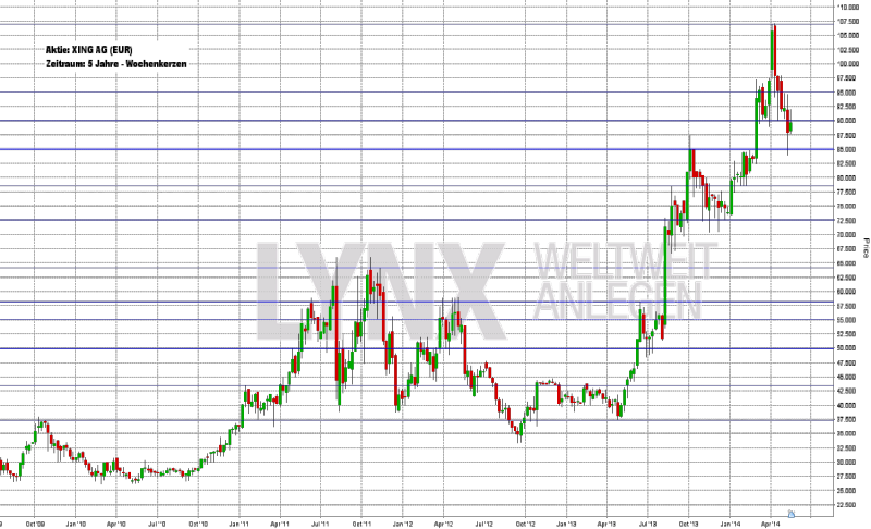 Die Xing AG (Börsenkürzel: O1BC) ist eigenen Angaben zufolge das soziale Netzwerk für berufliche Kontakte in Deutschland, Österreich und der Schweiz (Region: D-A-CH) und in diesen Ländern Marktführer. Xing verfügt über rund 7,25 Mio. Mitglieder im deutschsprachigen Raum. Insgesamt nutzen über 14 Mio. Mitglieder weltweit Xing als Plattform für Geschäft, Job und Karriere, suchen neue Auftraggeber oder auch Kooperationspartner (zum Vergleich: Der weltweite Marktführer ist LinkedIn mit über 300 Mio. Mitgliedern in mehr als 200 Ländern). Xing bietet online über 66.000 Fachgruppen, obendrein Events, Regionaltreffen und vieles mehr. Die Xing AG hat ihren Sitz in Hamburg, wo sie 2003 gegründet wurde, und ist seit 2006 börsennotiert. Mittlerweile ist Xing auch ständiges Mitglied im deutschen Index TecDAX. Die Xing AG befindet sich nur noch zu 26,86 Prozent im Streubesitz. Sie gehört zu 52,26 Prozent der Burda Digital GmbH. Weitere Großaktionäre oberhalb der Schwelle von 3,00 Prozent sind mit 6,66 Prozent die Deutsche Asset & Wealth Management, mit 5 Prozent Schroders und mit 3,10 Prozent Union Investment. Vorstandsvorsitzender ist Dr. Thomas Vollmoeller, Aufsichtsratsvorsitzender Stefan Winners. 2010 übernahm Xing die amiando AG aus München. Damit verleibte man sich Europas führenden Anbieter von Online-Eventmanagement und -Ticketing ein. Neuester Kauf ist die Firma mit dem Namen „kununu“, die als marktführende Plattform für Arbeitgeberbewertungen im deutschsprachigen Raum gilt. Xing hat sich damit als Marktführer im Bereich Social Recruiting deutlich gestärkt. In den folgenden Quartalen werden bei Xing aller Voraussicht nach die Segmente „Network/Premium“ und „E-Recruiting“ weiter für Schub sorgen. Im ersten Quartal 2014 wuchs Xing wieder stärker. Der Umsatz stieg gegenüber dem Vorjahr um 16 Prozent auf 22,8 Mio. Euro. Xing verzeichnete im ersten Quartal 2014 mit 242.000 neuen Mitgliedern das höchste Wachstum seit fünf Jahren. Der Geschäftsbereich „E-Recruiting“ zog im ersten Quartal 2014 nochmals um 33 Prozent auf 7,0 Mio. Euro an, der Geschäftsbereich „XING Events“ sogar um 34 Prozent auf 1,4 Mio. Euro. Bisher sind im Jahr 2014 unter anderem von JP Morgan, Hauck & Aufhäuser, Deutsche Bank, Jefferies, Warburg Research, Berenberg, Commerzbank und Close Brothers Seydler Analysen zur Aktie von Xing verfasst worden. Die Kursziele haben eine Bandbreite von 65,00 bis 140,00 Euro. Aus diesen Analysen ergäbe sich ein durchschnittliches Kursziel von 99,88 Euro. Die Aktie der Xing AG ist am Freitag mit einem Kurs von 89,66 Euro aus dem Xetra-Handel gegangen. Damit wird das Unternehmen an den Börsen derzeit mit 501,39 Mio. Euro bewertet. Am 23.05.2014 findet die Hauptversammlung des Konzerns statt, und am 06.08.2014 erreicht die Berichterstattung für das erste Halbjahr 2014 die Händler. Doch zu den Zahlen. Die Entwicklung von Xing sieht beachtlich aus. 2009 verzeichnete man noch Umsätze in Höhe von 44,0 Mio. Euro; in den folgenden Jahren ging es stetig aufwärts: 2010 lag der Umsatz bei 53,5 Mio. Euro, 2011 bei 65,1 Mio. Euro, 2012 bei 72,1 Mio. Euro und 2012 gar bei 83,3 Mio. Euro. Innerhalb kurzer Zeit verdoppelte Xing seinen Gesamtumsatz folglich beinahe. 2013 lag das Ergebnis der gewerblichen Geschäftstätigkeit bei 14,5 Mio. Euro und der Jahresüberschuss bei 9,1 Mio. Euro. 2012 hatte man noch einen Überschuss von 7,7 Mio. Euro ausgewiesen. Das Ergebnis je Aktie netto liegt für 2013 bei 1,65 Euro. Insgesamt sollen für 2013 23,4 Mio. Euro ausgeschüttet werden (der Vorstand von Xing hat nämlich zusätzlich eine Sonderdividende in Höhe von 3,58 Euro je Aktie beschlossen). Die Dividende pro Stammaktie liegt bei 0,62 Euro. Insgesamt würden so für 2013 4,20 Euro pro Anteilsschein ausgeschüttet. 2012 und 2012 wurden 0,56 Euro je Stück ausgezahlt. Gemäß Bilanz beschäftigte Xing im Geschäftsjahr 2013 530 Mitarbeiter. 2009 waren es noch 247 Mitarbeiter gewesen. Nach IFRS-Standards verfügte die Xing AG 2013 über 69,0 Mio. Euro an liquiden Mitteln, 37,2 Mio. Euro an wirtschaftlichem Eigenkapital, 5,6 Mio. Euro an gezeichnetem Kapital und 15,8 Mio. Euro an Verbindlichkeiten. Die Bilanzsumme belief sich somit auf 112,3 Mio. Euro. Gemäß der Bilanzprognose erreicht der Konzern 2014 einen Gesamtumsatz von 96,20 Mio. Euro, und 2015 sollen 108,20 Mio. Euro zu Buche stehen. Das EBIT läge demnach für 2014 bei 19,1 Mio. Euro und für 2015 bei 27,10 Mio. Euro. Der Gewinn je Aktie steigt auf 2,44 Euro 2014 und auf 3,31 Euro 2015. Für 2014 läge die Dividende gemäß dieser angenommenen Entwicklung bei 0,70 Euro und für 2015 bei 0,875 Euro. Der Nettogeldbestand der Xing AG soll 2014 bei 60,4 Mio. Euro liegen und sich 2015 sogar auf 72,40 Mio. Euro erhöhen. Neben der Sonderkonjunktur für die Xing-Aktie seit der Ankündigung der Sonderdividende ist auch der Blick auf die Fünf-Jahres-Performance erfreulich. Xing-Papiere haben in fünf Jahren fast 200 Prozent Rendite eingefahren. Dagegen sieht sogar der deutsche Leitindex DAX blass aus.
