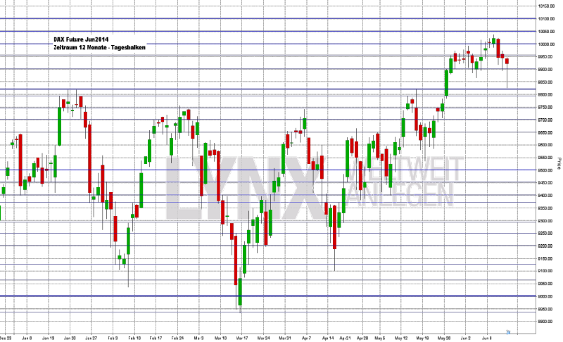 Der Mittwoch fängt um 00:45 Uhr mit dem neuseeländischen Leistungsbilanzsaldo für das erste Quartal an und setzt sich mit dem Sitzungsprotokoll der japanischen Notenbank BoJ (Bank of Japan) um 01:50 Uhr fort. Zur gleichen Zeit erscheint auch der japanische Handelsbilanzsaldo für den Mai. Um 02:00 Uhr gibt das Conference Board den Index der Frühindikatoren für Australien im April aus. Der entsprechende Frühindikatoren-Index April für Australien des Melbourne Instituts trifft um 02:30 Uhr ein. Erst um 10:30 Uhr setzt sich der Handelstag mit dem Sitzungsprotokoll der Bank of England (BoE) fort. Um 11:00 Uhr werden aktuelle Daten zur Produktion des Baugewerbes im April ausgegeben und zeitgleich der ZEW-Index für die Schweiz im Mai. Die Reihe der nordamerikanischen Daten beginnt am Nachmittag um 13:00 Uhr mit den MBA-Hypothekenanträgen. Um 14:30 Uhr folgen die kanadischen Großhandelsumsätze für den April zeitgleich mit dem US-Leistungsbilanzsaldo für das erste Quartal. Um 16:30 Uhr werden die US-Rohöllagerbestandsdaten ausgegeben, und um 20:00 Uhr steht mit dem Zinsentscheid der US-Notenbank Fed das Highlight des Handelstages auf der Agenda. Die Fed wird ihr Zielband aller Voraussicht bei 0,00 bis 0,25 Prozent belassen. Im Anschluss folgen das geldpolitische Statement der Notenbankführung und die Pressekonferenz. Möglicherweise steht den Märkten ein weiterer Schritt des Tapering-Prozesses bevor. Die monatlichen Stützungskäufe der Fed (QE3) könnten von derzeit 45 Mrd. US-Dollar auf 35 Mrd. US-Dollar reduziert werden. Erneut berichten fünf Unternehmen von ihren aktuellen Quartalsergebnissen, darunter Hennes & Mauritz (Schweden) und FedEx (USA).