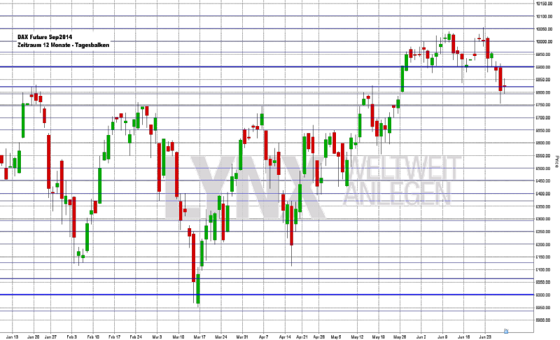 Die neue Handelswoche könnte einen weiteren Dämpfer für die Märkte bringen. ISIS hat offenbar bereits ein Kalifat in Syrien und dem Irak ausgerufen, auch die Situation in der Ukraine kommt nicht zur Ruhe. Vor allem sind aber Zinsverlautbarungen von Fed-Mitgliedern, wie zum Beispiel jüngst von Herrn Bullard von der Fed in St. Louis, ein mögliches Zeichen für einen doch schnelleren Paradigmenwechsel in Sachen US-Zinserhöhung vor dem Herbst 2015. Möglicherweise könnten die Zinsen doch schon eher angehoben werden. Den Anfang mit der Zinsdiskussion machte ja bereits Herr Carney von der Bank of England. Gleichwohl decken sich die Zinsprognosen von Bullard mit den letzten revidierten US-BIP-Prognosen nicht gerade. Hier würde man die zuletzt als „gut“ bezeichnete Wirtschaftsentwicklung wieder abwürgen. Eines ist sicher: Unsicherheit mag die Börse nicht!