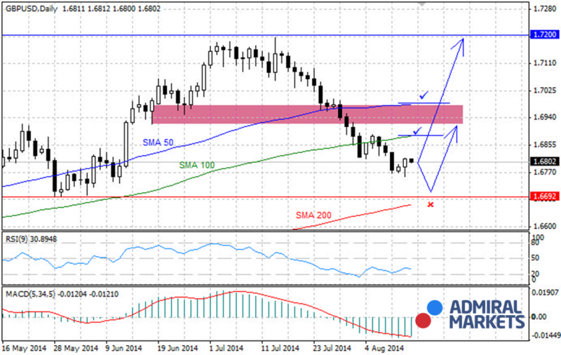 Das Paar hat sich etwas erholt, was für eine neue Aufwärtsbewegung sprechen könnte. Ein erster ernstzunehmender Beweis wäre gegeben, wenn der Widerstand 1,6890, wo wir den 100-Tage-SMA vorfinden, nachgibt. Im weiteren Verlauf würde vermutlich der Widerstand bei 1,6920 bis 1,6980 folgen (50-Tage-SMA), der seinerseits das nächste Ziel vorgeben könnte: 1,7200.