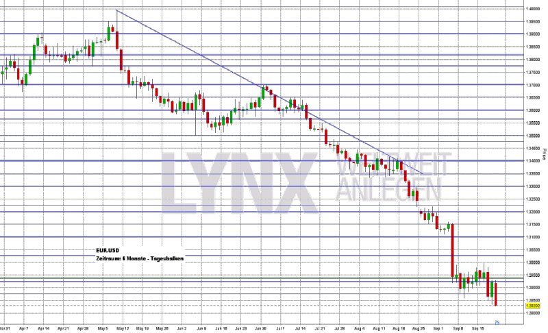 In der neuen Börsenwoche erwarten die Händler am Montag um 10:00 Uhr italienische Industrieumsätze und Aufträge für den Monat Juli. Um 14:30 Uhr wird der Chicago Fed National Activity Index für den August publiziert. Um 15:00 Uhr spricht EZB-Präsident Mario Draghi in Brüssel und um 16:00 Uhr werden die US-Verkäufe bestehender Häuser für den August veröffentlicht. Rund 15 Konzerne berichten von ihren aktuellen Quartalsergebnissen, darunter z.B. die Deutsche Annington Immobilien SE (D).