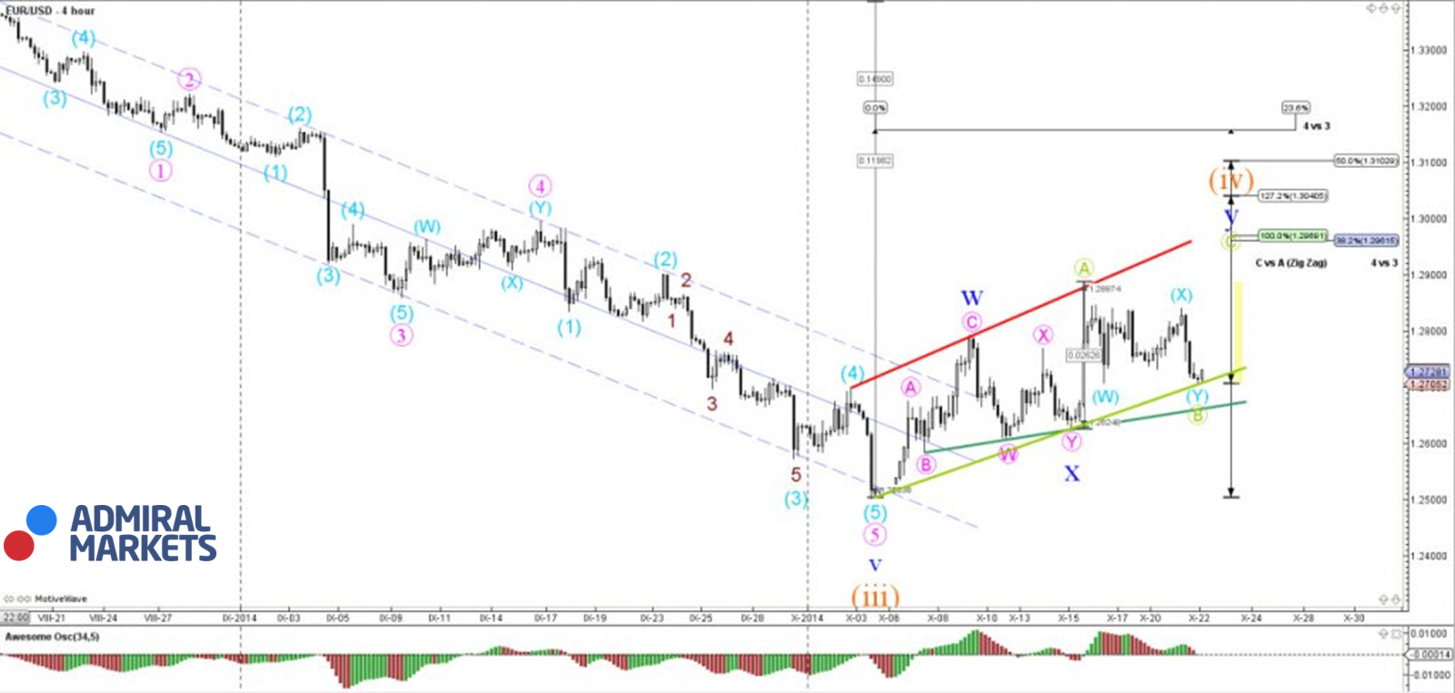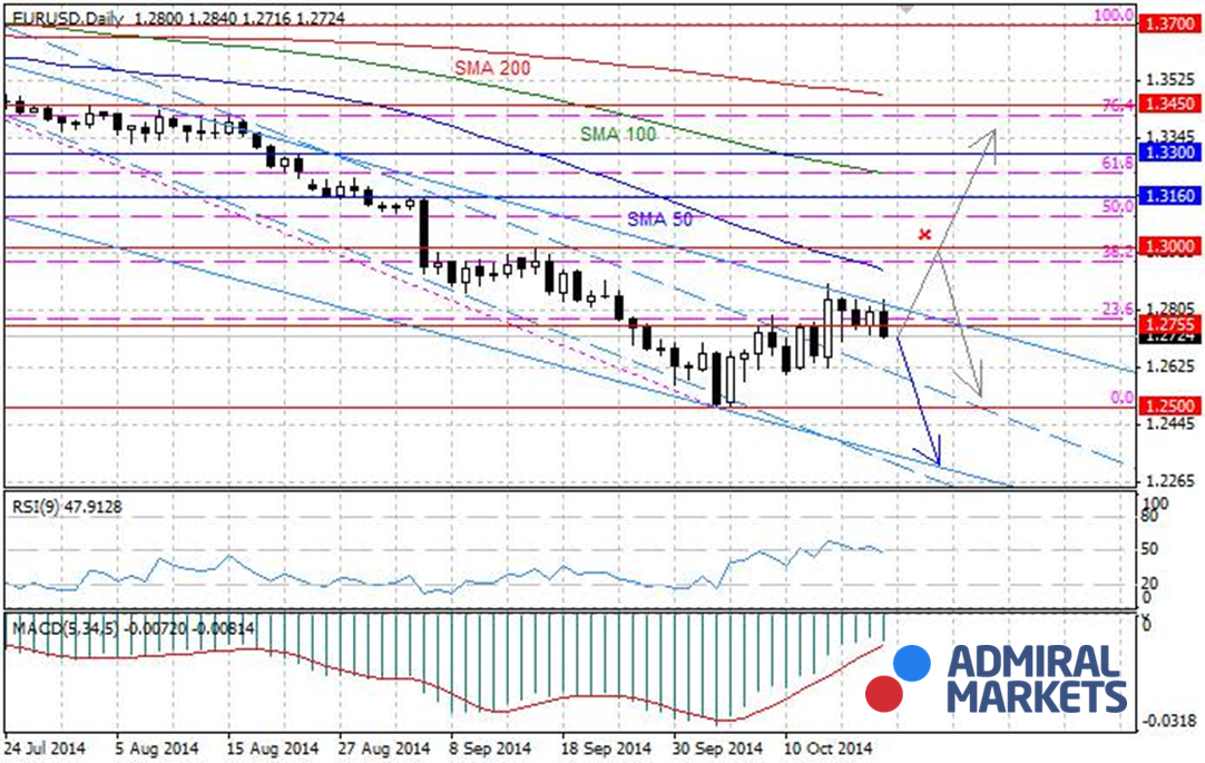 Der mögliche Ankauf von Unternehmensanleihen durch die EZB stimmt nachdenklich. Dabei geht es nicht einmal nur um die Frage, ob es die Aufgabe der EZB sei oder nicht, Unternehmensanleihen zu kaufen. Es reicht schon, wenn man sich die Lage der Unternehmen anschaut, um die es gehen kann. Wie stehen die Dinge wohl, wenn sich jetzt schon eine supranationale Regulierungsmacht einmischt? Offenbar alles andere als rosig. Ein Grund mehr für die derzeitigen Euro-Verkäufe …Wichtige Veröffentlichungen der nächsten sieben Tage:• 23.10.2014 – deutscher Hersteller-PMI• 24.10.2014 – ifo-Geschäftsklimaindex• 24.10.2014 – Neubautenverkäufe in den USA• 28.10.2014 – Aufträge langlebiger Wirtschaftsgüter ohne Transportequipment (USA)Nun aber zu unserer Technischen Analyse:Hier geht es zum ChartEin weiterer Anstieg des Paares wird durch die Widerstandslinie des langfristigen Abwärtskanals begrenzt. Folglich bleibt der Abwärtstrend vorerst bestehen. Dessen Ziele sehen wir momentan unterhalb des Tiefs bei 1,2500 und dann an der Unterstützungslinie des Kanals.Die Wahrscheinlichkeit eines kurzfristigen Sprungs über die Widerstandslinie hat sich verringert. Sollte es dennoch dazu kommen, folgt der Schritt zu dem starken Widerstand bei 1,2930 bis 1,3000, wo sich der 50-Tage-SMA und das 38,2-Prozent-Fibonacci-Retracement des Kursrückgangs 1,3700 bis 1,2500 befinden und von wo aus eine Wiederaufnahme des Abwärtstrends zu erwarten wäre.Nur ein Durchbruch und die anschließende Festigung oberhalb von 1,3000 kann die weiteren Perspektiven des Paares verbessern und den Weg in Richtung einer länger andauernden Erholung ebnen. Die Ziele wären in diesem Fall die Widerstände bei 1,3160, 1,3300 und 1,3450.Nun kommen wir zu unserer Daily-Wave-Analyse:Eine Konsolidierung bei Welle 4 (orange) kann länger dauern, da die 4er-Wellen generell die längste Zeit beanspruchen.EUR/USD – Vier-Stunden-ChartHier geht es zum ChartDas Paar verbleibt im Rahmen der Trendlinien (orange und grün). Ein Abprall von der Unterstützung ist wahrscheinlich.EUR/USD – Ein-Stunden-Chart Hier geht es zum ChartHinweise in eigener Sache:Freies Zeichnen im MetaTrader-Chart! Trading in Euro-Beträgen anstatt in Pips. Reverse-Order. Einfacher Teilschließungen vornehmen. Eleganteres Trading via Chart. Deutsche Realtime-News im MT4. Insgesamt 58 neue Features mit dem TUNING für den MT4 von Admiral Markets. Für Demo- und Livekonten. Kostenlos: http://www.admiralmarkets.de/starttrading/tradingtools/metatrader-tuning-supremePersönliche Konditionen für DAX, Dow und EUR/USD ab 20.000 Euro Kontogröße individuell auf Sie zugeschnitten! Mehr auf http://www.admiralmarkets.de/start-trading/daytradingIm Namen von Admiral Markets wünsche ich Ihnen erfolgreiche Trades!Ihr Jens ChrzanowskiGeschäftsführer Admiral Markets Partner Deutschland, MT am Germany GmbH DISCLAIMER: http://www.admiralmarkets.de/risikohinweis