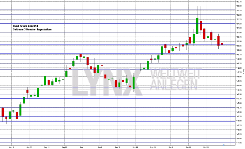 Am Donnerstag stehen direkt um 00:00 Uhr die australischen Neubauverkäufe für den September zur Bewertung an. Weiter geht es in Australien um 01:30 Uhr mit den Importpreisen für das dritte Quartal. Die europäische Session nimmt mit dem britischen Hauspreisindex für den Oktober, dem UBS-Konsumindikator für die Schweiz im September und der deutschen Erwerbstätigenzahl für den September ihren Anfang. Um 09:00 Uhr werden die spanischen Verbraucherpreise für den Oktober, das spanische BIP für das dritte Quartal sowie der Schweizer KOF-Indikator für den Oktober publiziert. Um 09:55 Uhr folgt die deutsche Arbeitslosenzahl mit der Arbeitslosenquote für den Oktober (es ist mit einer Quote von 6,7 Prozent zu rechnen). Um 11:00 Uhr wird das Dienstleister-, Verbraucher- und Industrievertrauen für die Eurozone, außerdem der Konjunkturklima-Indikator und die Wirtschaftsstimmung in der Eurozone veröffentlicht (alle Werte für Oktober). Um 13:30 Uhr stehen die Erstanträge und fortgesetzten Anträge auf Arbeitslosenhilfe aus den USA auf der Agenda der Händler. Zeitgleich wird das US-BIP für das dritte Quartal veröffentlicht. Die deutschen Verbraucherpreise für den Oktober werden um 14:00 Uhr ausgewiesen. Am Abend um 21:00 Uhr laufen die neuseeländischen Baugenehmigungen im September über die Ticker. Weit mehr als 100 Konzerne berichten von ihren aktuellen Quartalsergebnissen, darunter Bayer, Linde, Lufthansa, Volkswagen, Schaltbau und Wacker Chemie (D), Mastercard, Groupon und Starbucks (USA), Royal Dutch Shell und Barclays (GB), Eni (I) sowie Erste Group (A).
