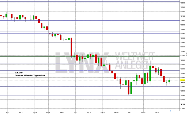 Der Freitag beginnt in der Nacht um 00:30 Uhr mit der japanischen Arbeitslosenquote für September, den Haushaltsausgaben für den September und den Verbraucherpreisen für Oktober. Das Protokoll der japanischen Notenbanksitzung (BoJ) wird um 00:50 Uhr publiziert. Ebenfalls in der Nacht, um 01:05 Uhr, wird das GfK-Verbrauchervertrauen Oktober für Großbritannien veröffentlicht. Die australischen Erzeugerpreise für das dritte Quartal und die australischen Kredite an den privaten Sektor im September folgen um 01:30 Uhr. Die japanischen Baubeginne für den September und der Monatsbericht der BoJ werden zu 06:00 Uhr erwartet. Der deutsche Einzelhandelsumsatz für den September läuft um 08:00 Uhr über die Ticker. Die französischen Erzeugerpreise und Konsumausgaben für den September werden um 08:45 Uhr publiziert. Um 10:00 Uhr ist die italienische Arbeitslosenquote für den September zu bewerten, um 11:00 Uhr folgen die italienischen Verbraucherpreise für den Oktober. Die Verbraucherpreise der Eurozone im Oktober und die Arbeitslosenquote der Eurozone im September stehen als Highlights um 11:00 Uhr auf der Agenda der Händler. Die wöchentlichen LTRO-Rückzahlungen an die EZB folgen um 12:00 Uhr zeitgleich mit den italienischen Erzeugerpreisen für den September. Aus den USA werden um 13:30 Uhr die persönlichen Einkommen und die Konsumausgaben für den September erwartet. Zeitgleich werden das monatliche kanadische BIP für den August und die US-PCE-Kernrate für den September publiziert. Um 14:45 Uhr folgt der Chicago-Einkaufsmanagerindex für den Oktober und um 14:55 Uhr ist das Konsumklima der University of Michigan für den Oktober an der Reihe. Am späten Abend kurz vor US-Handelsschluss wird schließlich um 20:30 Uhr der COT-Report der CFTC ausgewiesen. Rund 30 Unternehmen berichten von ihren aktuellen Quartalsergebnissen, darunter Chevron und ExxonMobil (USA), Fuchs Petrolub (D) und BNP Parisbas (F).