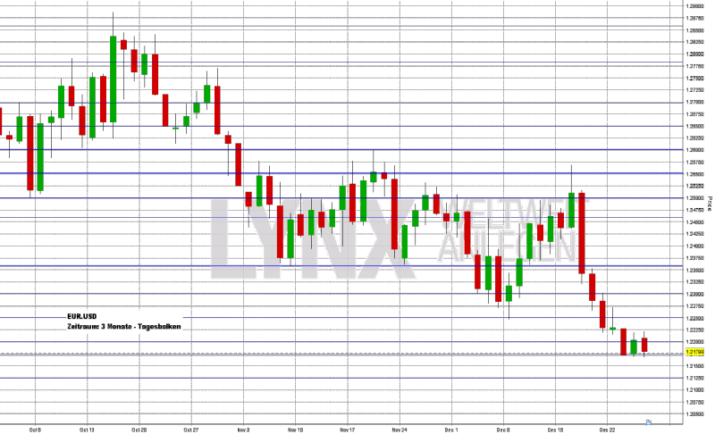Der Mittwoch startet in Asien-Pazifik mit den australischen Krediten an den privaten Sektor im Monat November und dem chinesischen HSBC-Einkaufsmanagerindex des verarbeitenden Gewerbes für den Dezember um 02:45 Uhr. Um 14:30 Uhr werden die Erstanträge und fortgesetzten Anträge auf Arbeitslosenhilfe in den USA veröffentlicht, um 15:45 Uhr der Chicago-Einkaufsmanagerindex für den Dezember und um 16:00 Uhr die schwebenden Hausverkäufe für den Monat November. Rohölhändler achten um 16:30 Uhr auf die aktuellen US-Rohöllagerbestandsdaten. An den meisten Börsenplätzen in Europa findet nur ein verkürzter Handel statt, die Börsen in Deutschland, Österreich, der Schweiz und Italien bleiben geschlossen. Global ist mit einem illiquiden Handel zu rechnen, der starke und unvorhersehbare Kursbewegungen hervorbringen kann.