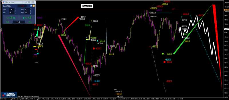 • Tagesschlusskurs-Marken: 9.877 und 9.420