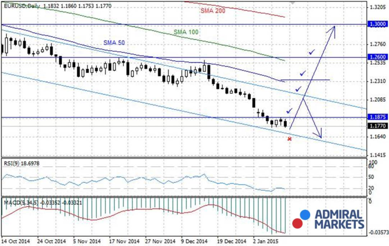 Das Paar wird erneut unterhalb von 1,1875 gehandelt und bewegt sich in Richtung der Unterstützungslinie. Die Wahrscheinlichkeit eines Durchbruchs ist nach wie vor sehr gering, denn das Paar ist stark überverkauft, wie auf größeren Timeframes zu erkennen ist. Folglich erwarten wir eine Trendwende nach oben.