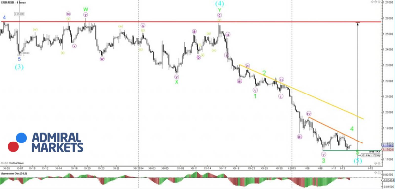 Sollte das Paar die Unterstützung (grün) passieren, könnte die Welle 4 als abgeschlossen betrachtet werden.