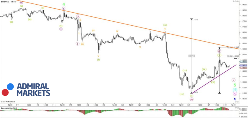 Das Paar hat vermutlich die Welle 4 beendet. Der Kurs könnte jedoch auf den oberen Level zurückkehren. Sollte er den unteren Level der Welle 1 brechen, wäre die Skizze vermutlich verworfen.