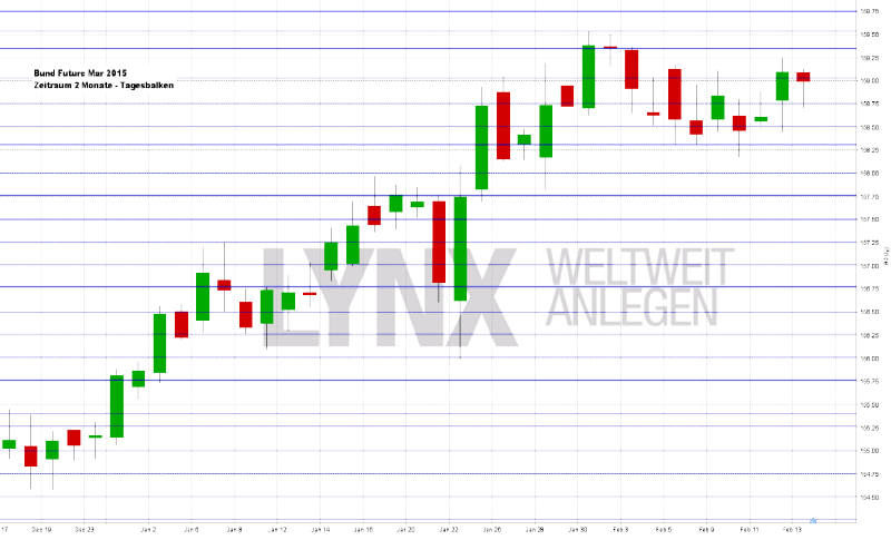 In der neuen Börsenwoche erwartet die Händler am Montag ein sehr dünner volkswirtschaftlicher Datenkalender. Um 12:00 Uhr wird der Monatsbericht der Bundesbank für den Februar publiziert und um 15:45 Uhr folgen die wöchentlichen Ankaufvolumina der EZB im Markt mit Pfandbriefen und Asset Backed Securities (ABS). In Brüssel trifft sich die Eurogruppe – Hauptthema ist und bleibt die Erarbeitung einer Lösung für Griechenland. In den USA findet am Montag kein Handel statt – man feiert den Presidents’ Day beziehungsweise Washington’s Birthday. Rund zehn Unternehmen publizieren ihre aktuellen Quartalsergebnisse, darunter Osram (D) und Bertrandt (D).