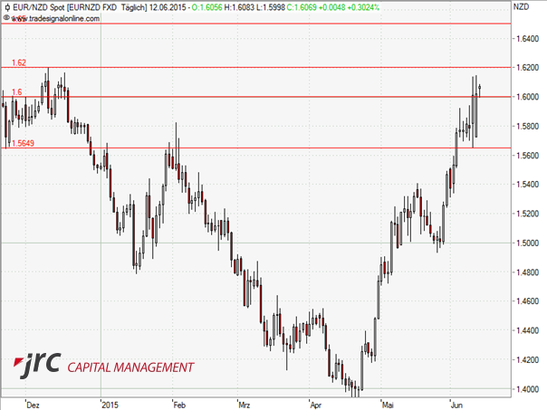 Für eine Überraschung auf den Märkten sorgte in dieser Woche die Notenbank aus Neuseeland. Zwar kamen in den letzten Wochen Gerüchte auf, die Reserve Bank of New Zealand könnte demnächst den Leitzins senken, dennoch traf dieser Schritt viele Marktteilnehmer unvorbereitet und sorgte für starke Bewegungen im Kiwi. So auch beim EURNZD, welcher nach der Meldung über den Zinsschnitt mehr als 250 Pips anstieg.