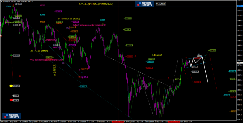 Zur Einschätzung für die neue Handelswoche: Der DAX ist in den vergangenen fünf Handelstagen nicht wirklich weitergekommen. Er könnte in der nächsten Handelswoche versuchen, die 11.000 Punkte zu erreichen. Sollte sich eine Aufwärtsbewegung in diese Richtung ausbilden, so wäre denkbar, dass der DAX im Umfeld dieser Marke zurücksetzt. Im Rahmen von dynamischen Aufwärtsbewegungen könnte der DAX die 11.000 Punkte auch überschreiten, wobei wir nicht davon ausgehen, dass diese Marke in den kommenden fünf Handelstagen nachhaltig überwunden wird. Anlaufziele bei einem Überwinden wären die 11.025/30 und im Nachgang die 11.050/65 Punkte. Wir erwarten nicht, dass es der DAX schafft, sich nachhaltig über die 11.050/65 zu schieben oder die 11.100 Punkte zu erreichen. Vielmehr könnte es sein, dass der Index sich hier festbeißt, aber nicht wesentlich darüber steigen kann. Sollte das eintreffen, so wäre übergeordnet zunächst mit einem größeren Rücksetzer zu rechnen, der sich auch erst Mitte November ausbilden könnte.