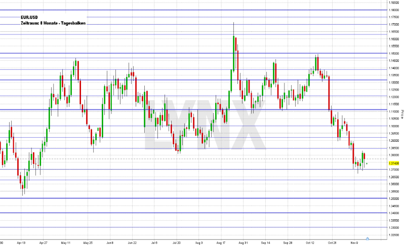 Die monatliche Wirtschaftsumfrage der japanischen Notenbank steht am Freitag um 06:00 Uhr auf der Agenda der Händler. Um 08:00 Uhr werden die deutschen Erzeugerpreise für den Oktober ausgewiesen und um 10:30 Uhr folgen die Zahlen zur Nettokreditaufnahme des britischen öffentlichen Sektors im September. Um 13:00 Uhr findet an der Terminbörse EUREX der kleine Verfallstag statt – es verfallen Optionen auf Aktien und den DAX. Am Nachmittag sind die kanadischen Einzelhandelsumsätze und Verbraucherpreise für den Oktober zu bewerten. Um 16:00 Uhr wird das November-Verbrauchervertrauen für die Eurozone ausgewiesen. Kurz vor US-Börsenschluss wird um 21:30 Uhr der CoT-Bericht der CFTC publiziert. Rund zehn Unternehmen berichten von ihren aktuellen Quartalszahlen, darunter Abercrombie & Fitch (USA).