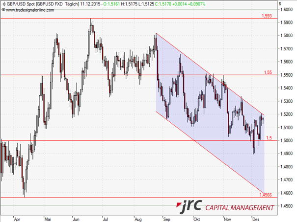 Der Tag der Entscheidung steht an. Nachdem lange spekuliert wurde, wird nun endlich geklärt, ob die Fed ihren Leitzins in diesem Jahr erhöht. Zum letztmöglichen Termin in diesem Jahr stehen die Zeichen, für eine Erhöhung, gut. Aus dem Grund liegt auch der Fokus der Märkte auf dem Mittwoch, wenn die Fed ihre Entscheidung bekannt gibt. Weitere für den Cable relevante Konjunkturdaten sind die Inflationszahlen am Dienstag aus dem Vereinigten Königreich und den USA.