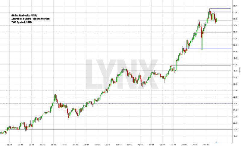 Kaffee wird auch 2016 und darüber hinaus getrunken, Starbucks wird seinen Marktanteil zumindest annähernd halten. Ein kleineres Störfeuer für die Kennzahlen des Konzerns könnte die weitere Preisentwicklung beim Rohstoff „Kaffee“ darstellen. Die Notierungen sind an den globalen Rohstoffbörsenplätzen in den letzten Jahren überwiegend gefallen. Sollten die Preise in den nächsten Monaten bis Jahren wieder anziehen, wird dies die Marge bei Starbucks leicht drücken. Ein größeres Übel wären starke Steuerbelastungen – Starbucks steht hier weiterhin in der Kritik und auf der Liste der US-Konzerne, die unter anderem auch durch „LUX-Leaks“ auffällig wurden und in den USA sowie anderen Ländern durch Steuersparmodelle, Steuertricks und internationale Steuermodalitäten weniger Steuern zahlen, als dies eigentlich der Fall sein sollte.
