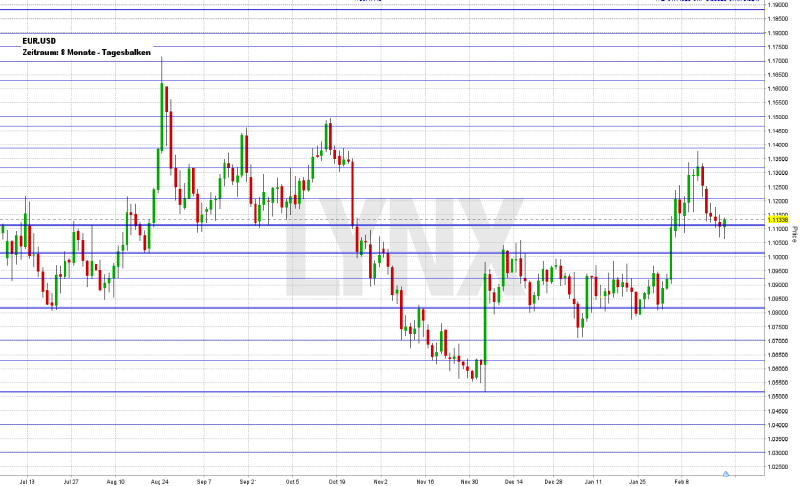 Weiterhin ist aufgrund des doch recht starken Aufwärts-Moves von Anfang Februar die Long-Seite interessant, wobei das Währungspaar den Sprung über den aktuellen Widerstand 1,1200 erneut schaffen sollte. Kurse darunter sollten für eine Trading-Pause genutzt werden, da die Short-Seite noch keinen nennenswerten Vorteil innehat. Auf der Long-Seite sind Kurse in Richtung 1,1300 erneut als realistisch einzustufen.
