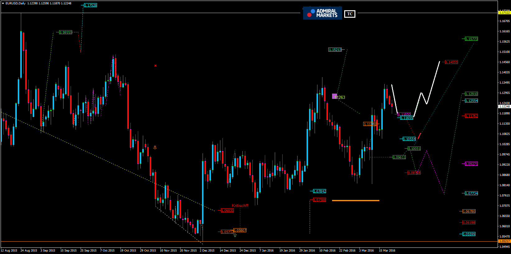 Die Wahrscheinlichkeit einer Zinserhöhung durch die Fed heute wird von den Marktteilnehmern eher als gering eingeschätzt. Dennoch erhofft man sich Hinweise auf die weitere Vorgehensweise der Zentralbank. Die Risiken für die US-Wirtschaft, die noch Ende des letzten Jahres zu spüren waren, haben nachgelassen. Die Märkte wurden stabiler, die Inflation hat angezogen, die Rohstoffpreise ebenfalls. Eine harte Rhetorik könnte dem US-Dollar also unter Umständen viel Kraft verleihen. Angesichts des schwachen Euros ist die Richtung des wichtigsten Währungspaares damit beinahe vorbestimmt.Nun kommen wir zu unserer Technischen Analyse:Hier geht es zum ChartRückblick