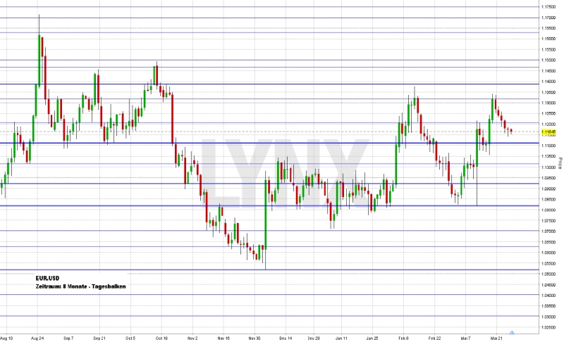 Die letzten Handelstage des EUR.USD standen nahezu ohne Ausnahme im Zeichen der Konsolidierung im vorherrschenden Aufwärtstrend, was Käufe teilweise ins Minus laufen ließ. Tag für Tag ging es ein kleines Stück weiter abwärts. Zum Wochenende schloss der Markt im Bereich 1,1165 und somit etwa 150 Ticks tiefer als in der Vorwoche. Aus kurzfristiger Sicht sind die vergangenen Abwärtstage etwas kontraproduktiv für die Long-Seite und erst Kurse über 1,1200 sollten erneut Kaufgedanken auslösen. Mittelfristig ist der Markt aus charttechnischer Sicht weiterhin klar long und Long-Trades könnten bis zur Unterstützung 1,1100 weiterhin umgesetzt werden. Mittel- wie auch kurzfristig könnte als realistisches Ziel die Marke 1,1325 angenommen werden.