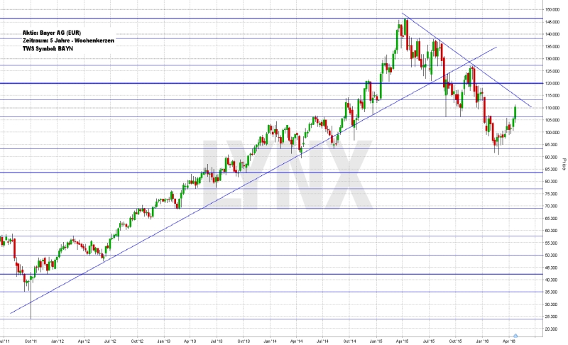 Am 26.04. veröffentlicht die Bayer AG den Zwischenbericht für das erste Quartal 2016, am 29. 04. findet die Hauptversammlung statt, folglich handelt die Aktie am 30. April dann ex Dividende.