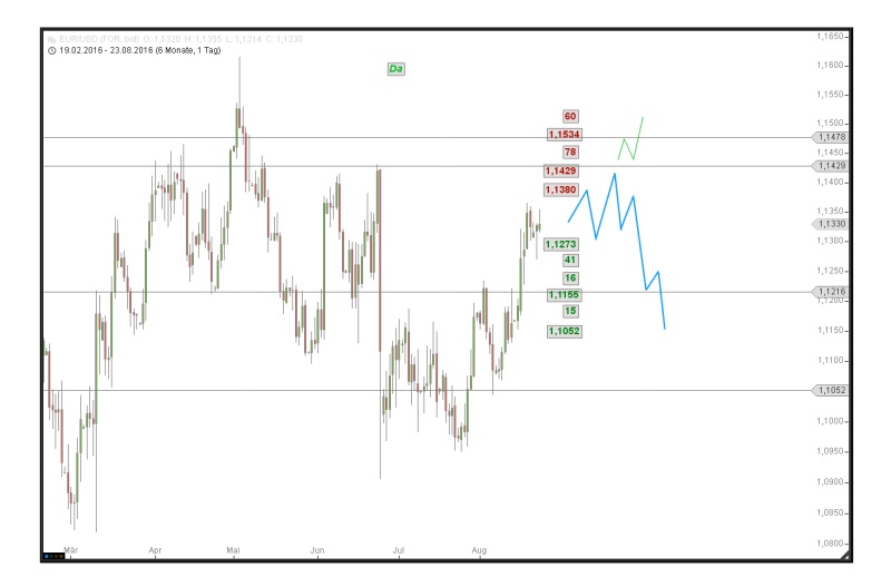 Wir hatten in unserem Setup auf der Oberseite erwartet, dass der EUR/USD mit einem Überschreiten der 1,1300 zunächst die 1,1330 und dann die 1,1367/72 anlaufen könnte. Das was das maximale Ziel, was wir auf der Oberseite gesehen haben. Der EUR/USD hat unser Anlaufziel exakt getroffen und ist im Bereich 1,1366 nach unten abgeprallt. Damit hat sich unser Setup auf der Oberseite vollständig realisiert. Die Rücksetzer blieben deutlich über unserem ersten Anlaufziel auf der Unterseite.