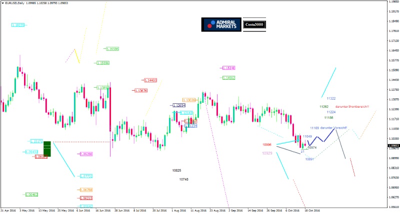 Wenn sich der EUR/USD nicht über der 1,0980 halten kann und unter diese Marke rutscht, wäre die 1,0967/62 die erste relevante Anlaufmarke. Bereits hier könnten sich Erholungen einstellen. Gelingt dies aber nicht, so könnten weitere Abgaben bis 1,0950/48 oder 1,0944/42 folgen. Wird die 1,0942 aufgegeben, so wäre der Weg bis 1,0924/20 und dann bis 1,0908/05 frei. Mit einem Unterschreiten der 1,0905 wären die 1,0898/95 und die 1,0888/85 die nächsten Anlaufmarken. Sollte der EUR/USD bis 1,0885 zurücksetzen, so bestünde hier eine gute Chance auf Stabilisierung und Erholung.
