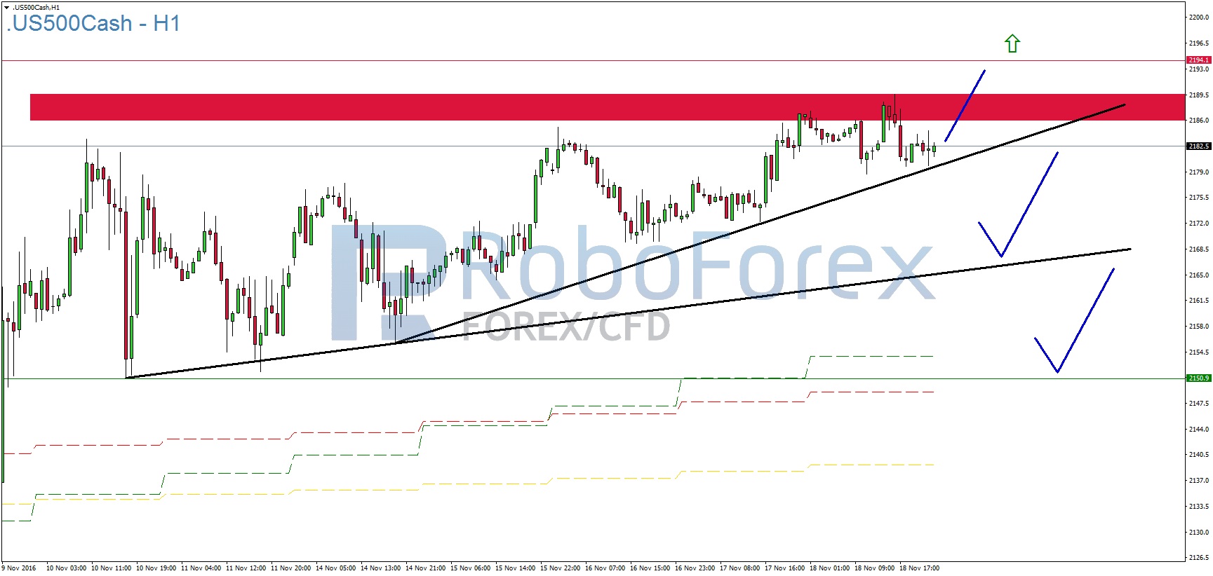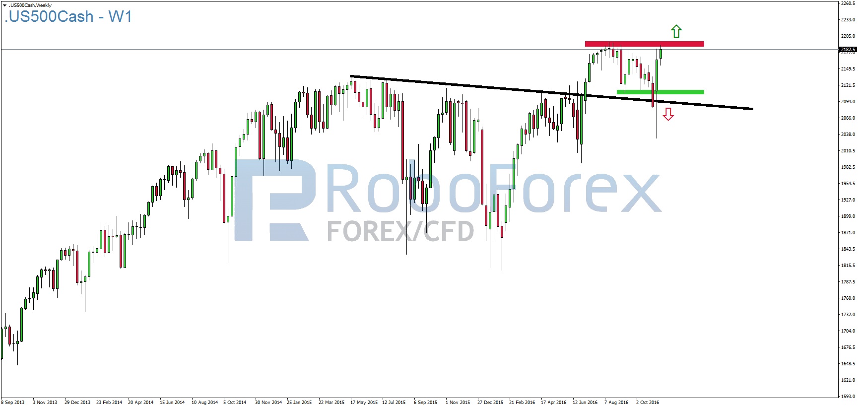 Der S&P 500 konnte auch in der vergangenen Handelswoche moderat zulegen und sich in den Bereich des bisherigen Allzeithochs bei 2.194 Punkte kämpfen. Ein dynamischer und mutiger Angriff auf den Widerstandsbereich sieht allerdings anders aus. Dies hängt auch damit zusammen, dass die gestiegenen Erwartungen an das Wirtschaftswachstum nicht nur Positives für US-Aktien zur Folge hat. Auch der US-Dollar zeigt nach der US-Wahl eine massive Stärke, die sich mittlerweile als Bremsklotz für die Aufwärtsbewegung bei US-Aktien herauskristallisiert. Hinzu kommt, dass durch die jüngste Kursrally einiges an Erwartungen bereits vorweggenommen worden ist. Bevor hier eine Rallyfortsetzung in Angriff genommen wird, dürfte der Markt zunächst abwarten, ob die Erwartungen tatsächlich getroffen werden.
