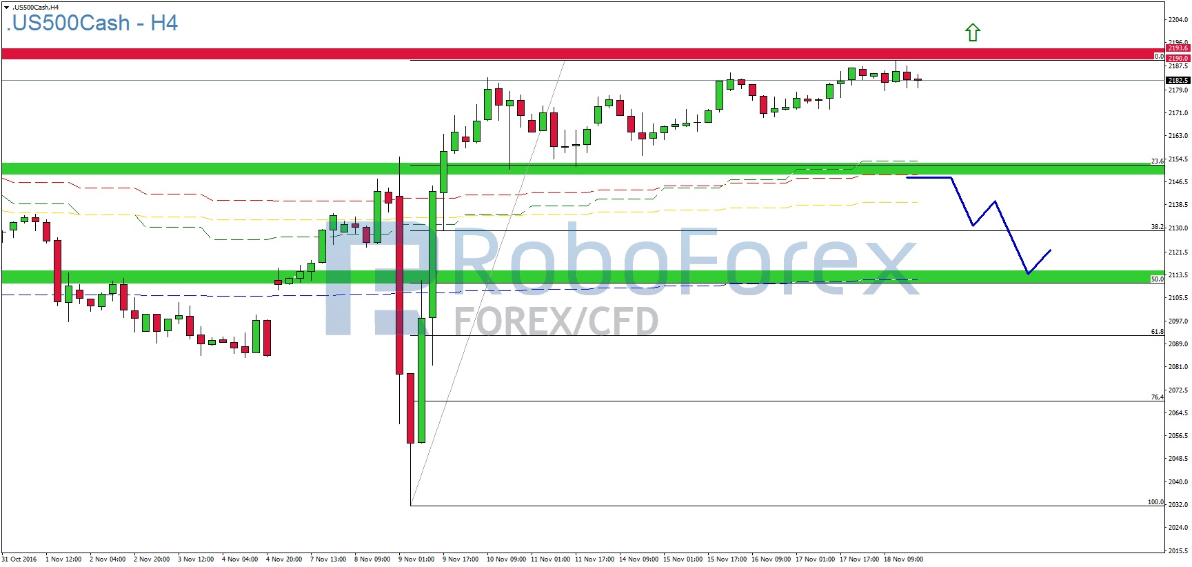 Der S&P 500 konnte die nach der US-Wahl eingeleitete Aufwärtsbewegung auch in der vergangenen Handelswoche fortsetzen, verlor dabei aber sichtlich an Dynamik. Dabei ging der „Weltleitindex“ mit 2.189 Punkten ins Wochenende und notierte damit nur weniger Punkte unter dem Allzeithoch vom 23. August bei 2.194 Punkten.