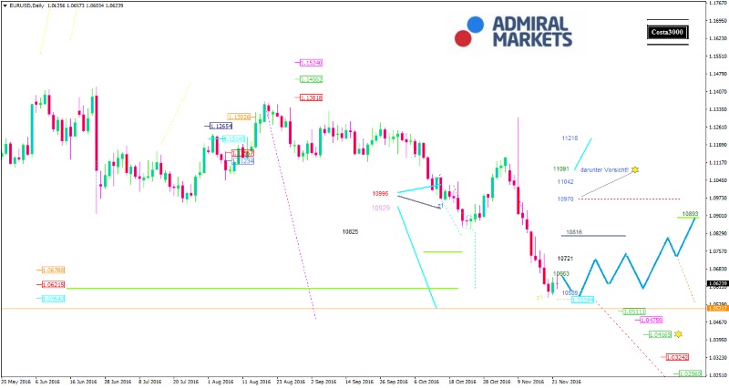 Von Seiten der Geldpolitik ist bis Anfang Dezember nichts zu erwarten. Die politische Komponente könnte allerdings einen nicht unerheblichen Einfluss ausüben. Anfang Dezember steht in Italien die Abstimmung über die Verfassungsreform an. Scheitert Ministerpräsident Renzi mit diesem Vorhaben, so dürfte dies den EUR/USD weiter längerfristig unter Druck setzen. Es wird spekuliert, dass Italien das nächste Land sein könnte, dass sich aus der EU verabschiedet. Aktuell und übergeordnet spricht somit nichts für eine baldige und substanzielle Erholung des EUR/USD.