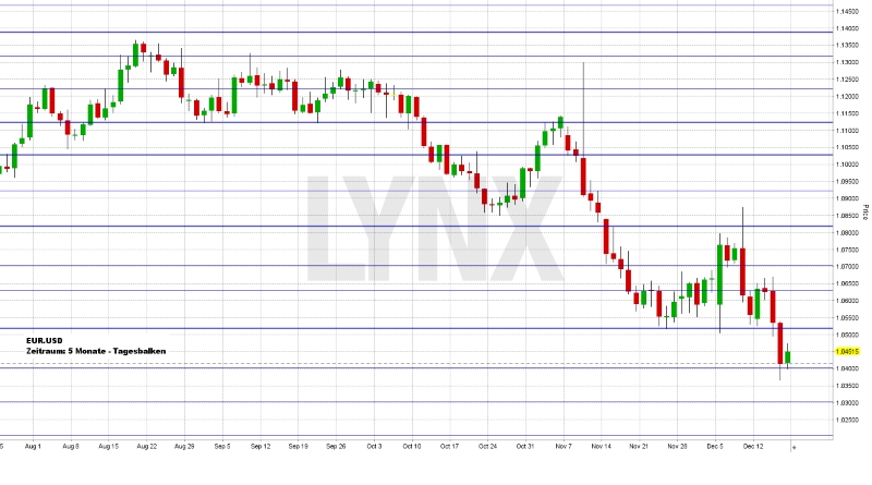 Wenn man sich ein Traumszenario malen könnte, so wäre der Verlauf des EUR.USD in der vergangenen Handelswoche eine nahezu perfekte Vorlage. Wie angenommen lag der Trendvorteil weiterhin auf der Abwärtsseite und wie geplant konnte eine leichte Erholung der Kurse zu Wochenbeginn ideal für einen Einstieg in Richtung des Wochenziels 1,0400 ausgenutzt werden, was einen guten Gewinn ermöglichte. Das Wochentief lag knapp unter der Unterstützung 1,0400 und der Wochenschlusskurs im Bereich 1,0450. Der Blick bleibt vorerst auf die Abwärtsseite gerichtet. Unterhalb von 1,0550 ist es weiterhin nicht auszuschließen, dass der Markt erneute ausnutzbare Möglichkeiten in Richtung der Vorwochentiefs bietet. Setzt sich das Kern-Momentum der Vorwoche fort, so wären auch durchaus weitere Tiefs denkbar. Ein nachhaltiges Überschreiten der 1,0550 wäre vorerst etwas nachteilig für das klare Abwärtsbild, da eine etwas stärkere Erholung in Richtung 1,0650 und 1,0700 ebenfalls ein mögliches Szenario darstellt. Käufe sind jedoch wenn überhaupt nur mit einem sehr defensiven Setup umzusetzen.