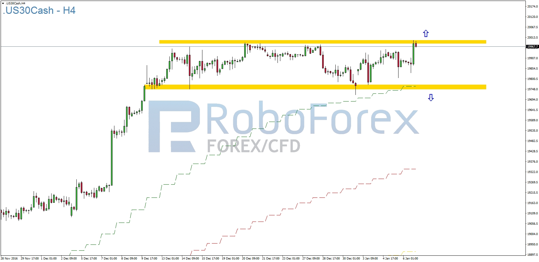Der DOW Jones verzeichnete mit 19.999 Punkten zwar ebenfalls ein neues Allzeithoch, verpasste allerdings die psychologisch wichtige 20.000 Punkte Marke um Haaresbreite. Damit bleibt auch die Seitwärtsrange zwischen 19.746 Punkten und 19.990 Punkten weiterhin intakt.