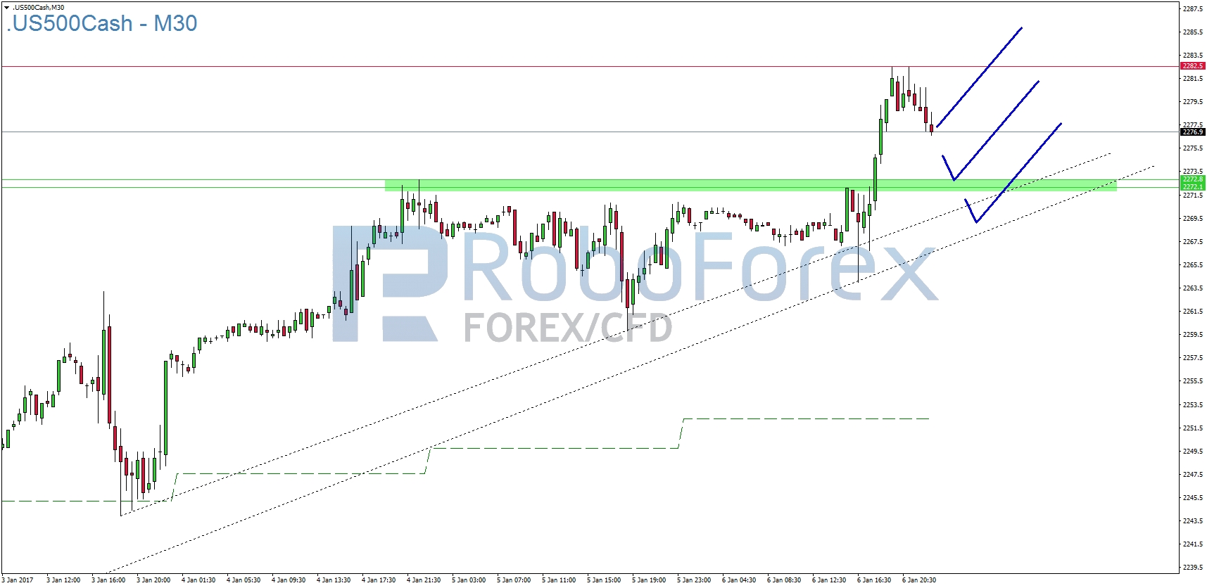 Im M30-Chart werden die temporäre Ausbruchsbewegung über den vorangegangenen Widerstandsbereich und die anschließende Korrekturbewegung nochmals deutlich. Hier ergibt sich in den unteren Zeiteinheiten unter Umständen ein Pullbackszenario zum Handelsbeginn. Damit verbunden wäre ein Rücklauf an die Unterstützung bei 2.272 Punkten und eine anschließende dynamische Impulsbewegung.