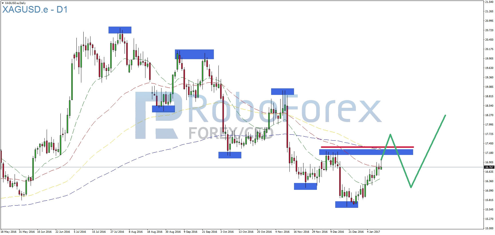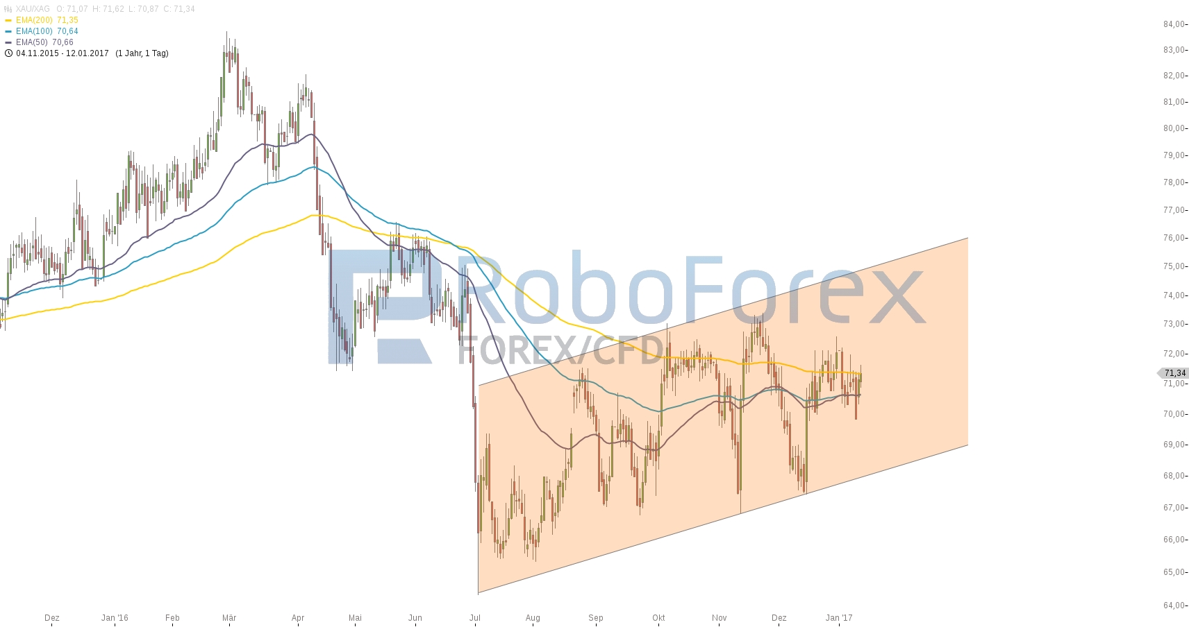 Im Vergleich zum gelben Edelmetall weist Silber allerdings eine klarere Abfolge von Impulsbewegungen und Korrekturen aus. Hierfür sorgt insbesondere die Korrekturbewegung zwischen dem 23. November und dem 14. Dezember, als Silber von 16,20 USD auf 17,23 USD ansteigen konnte.