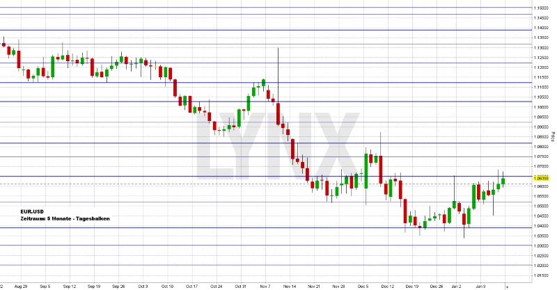 Am Donnerstag werden um 01:00 Uhr die Inflationserwartungen der australischen Verbraucher im Januar veröffentlicht, um 01:01 Uhr folgt die britische RICS-Hauspreisbilanz für den Dezember und um 01:30 Uhr werden die australischen Arbeitsmarktdaten (Teil- und Vollzeitbeschäftigung, Arbeitslosenquote, Erwerbstätigenquote, Partizipationsrate) für den Dezember publiziert. Um 02:30 Uhr wird der chinesische Hauspreisindex ausgewiesen und um 09:15 Uhr folgen die Schweizer Erzeuger- und Importpreise Dezember. Die Leistungsbilanz der Eurozone im November wird um 10:00 Uhr ausgegeben. Mitunter gilt der um 13:45 Uhr zu erwartende EZB-Leitzinsentscheid als Highlight der Woche, vor allem aber die für 14:30 Uhr angesetzte Pressekonferenz mit der Notenbankführung um EZB-Präsident Mario Draghi. Zeitgleich werden aus den USA die Baubeginne und Baugenehmigungen im Dezember, die Erstanträge und fortgesetzten Anträge auf US-Arbeitslosenhilfe und der Philadelphia-Fed-Index für das verarbeitende Gewerbe im Januar sowie aus Kanada die Industrieumsätze November erwartet. Um 17:00 Uhr werden die US-EIA-Rohöllagerbestandsdaten der Woche ausgewiesen. Um 22:45 Uhr werden die neuseeländischen Baugenehmigungen für den November publiziert. Rund 70 Unternehmen berichten von ihren Quartals- und Jahresergebnissen, darunter Singapore Exchange (SG), Bankinter (ES), Bank of New York Mellon (US) und Alaska Air (US).