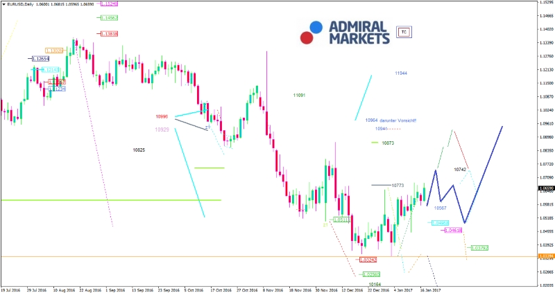 Die angekündigte Wirtschaftspolitik des neuen US-Präsidenten könnte der FED einen Strich durch die Rechnung machen und alle Bemühungen um eine starken US-Dollar zunichtemachen. Der Dollar sei zu stark für die Vereinigten Staaten, so Trump. Sein „America First“-Programm sieht enorme Investitionen in die US-Wirtschaft vor, auch außerhalb von den USA. Ein teurer Dollar stünde diesem Vorhaben sicherlich im Weg. Allerdings wird sich FED-Chefin Janet Yellen sicherlich nicht so leicht von Trumps Plänen überzeugen lassen, und so müssen sich die Märkte wohl auf eine Konfrontation zwischen den beiden einstellen. Eine Anhebung der Zinsen wird vermutlich zunächst einmal auf sich warten lassen.