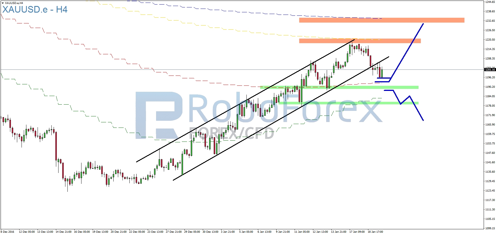 Am gestrigen Handelstag bestätigte das gelbe Edelmetall den bearishen Bruch des aufwärts gerichteten Trendkanals auf Stundenbasis. Dieser Trendkanal ist im H4-Chart ebenfalls ersichtlich. Damit hat Gold ein erstes bearishes Signal geliefert. Eine Trendwende ist hierdurch aber noch nicht abschließend bestätigt, sodass das Bullenlager nach wie vor die Chance hat die Erholungsrally fortzusetzen.