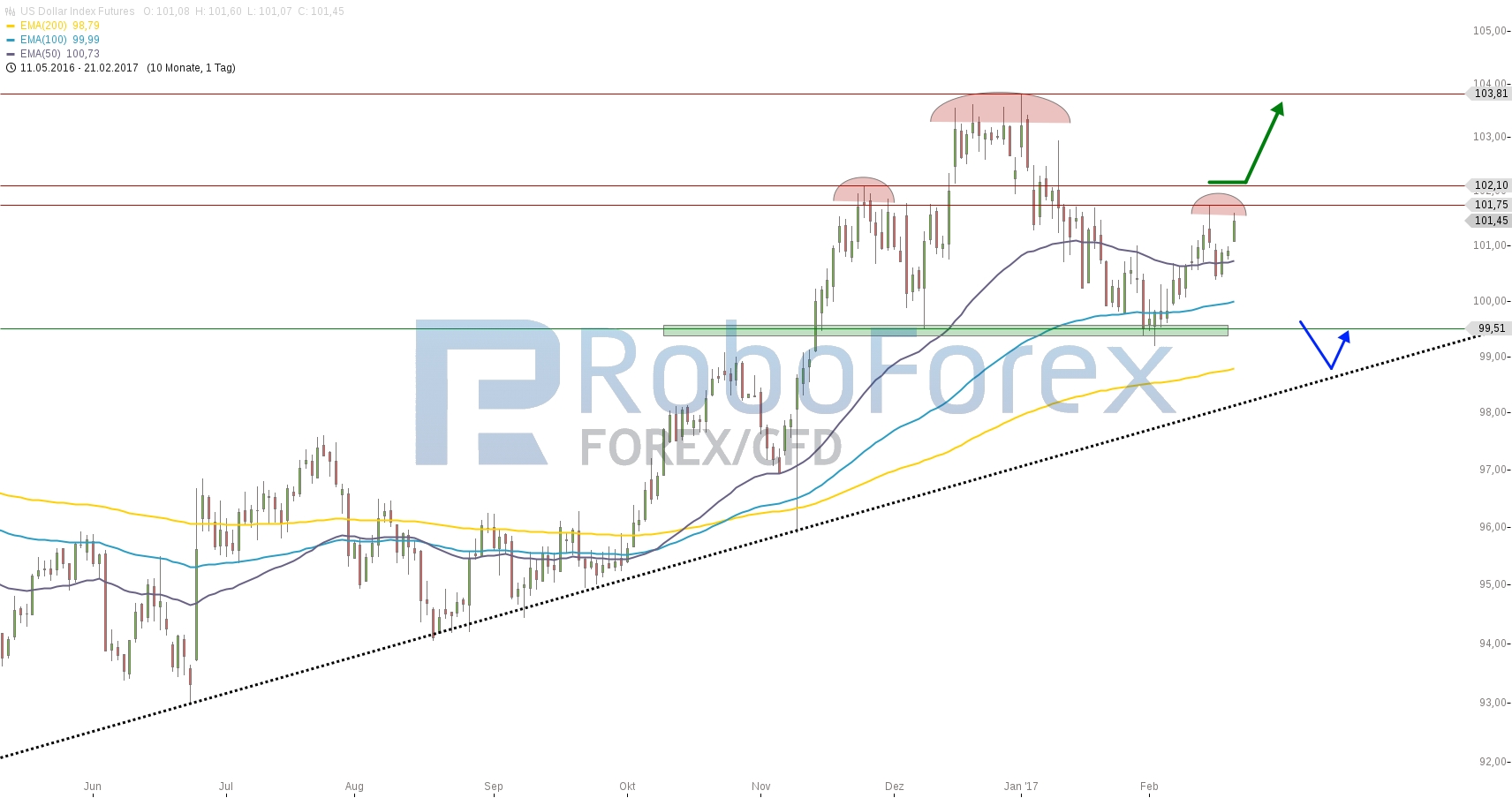 Marktsituation USD-Dollar (US Dollar Index) 22. Februar 2017: