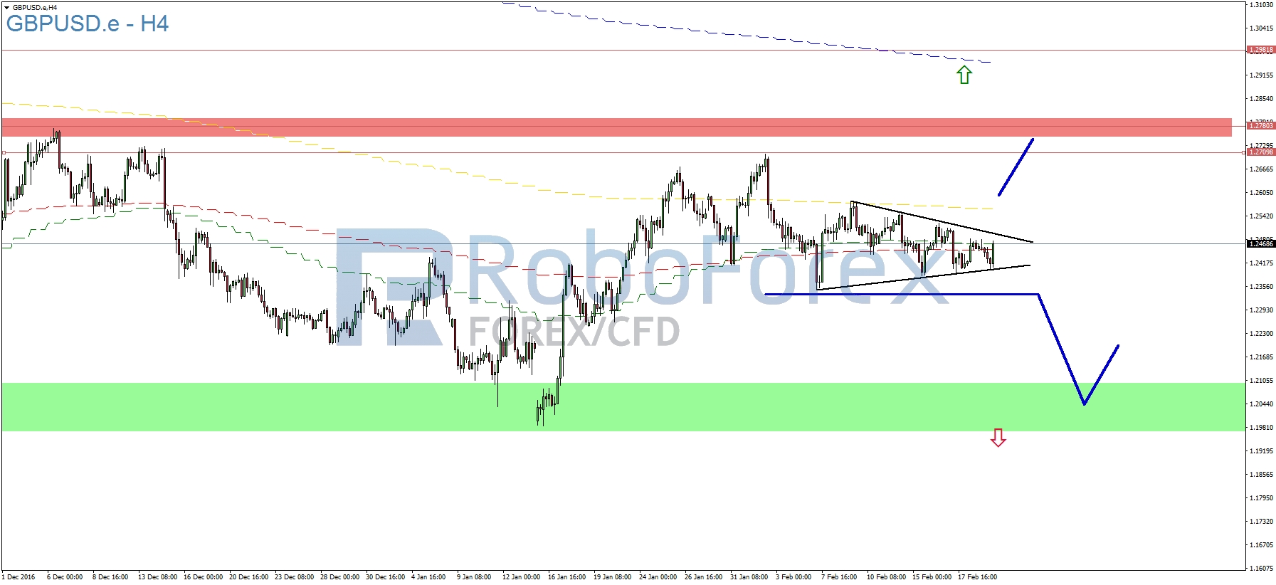 Die 100er-EMA (gelb gestrichelt) gilt auf der Oberseite als weiteres zwischenzeitliches Kursziel. Um einen bullishen oder bearishen Ausbruch aus der Formation zu bestätigen müsste das Währungspaar nachhaltige Notierungen über 1,2524 USD für einen bullishen Ausbruch und unter 1,2380 USD für einen bearishen Ausbruch vorweisen.