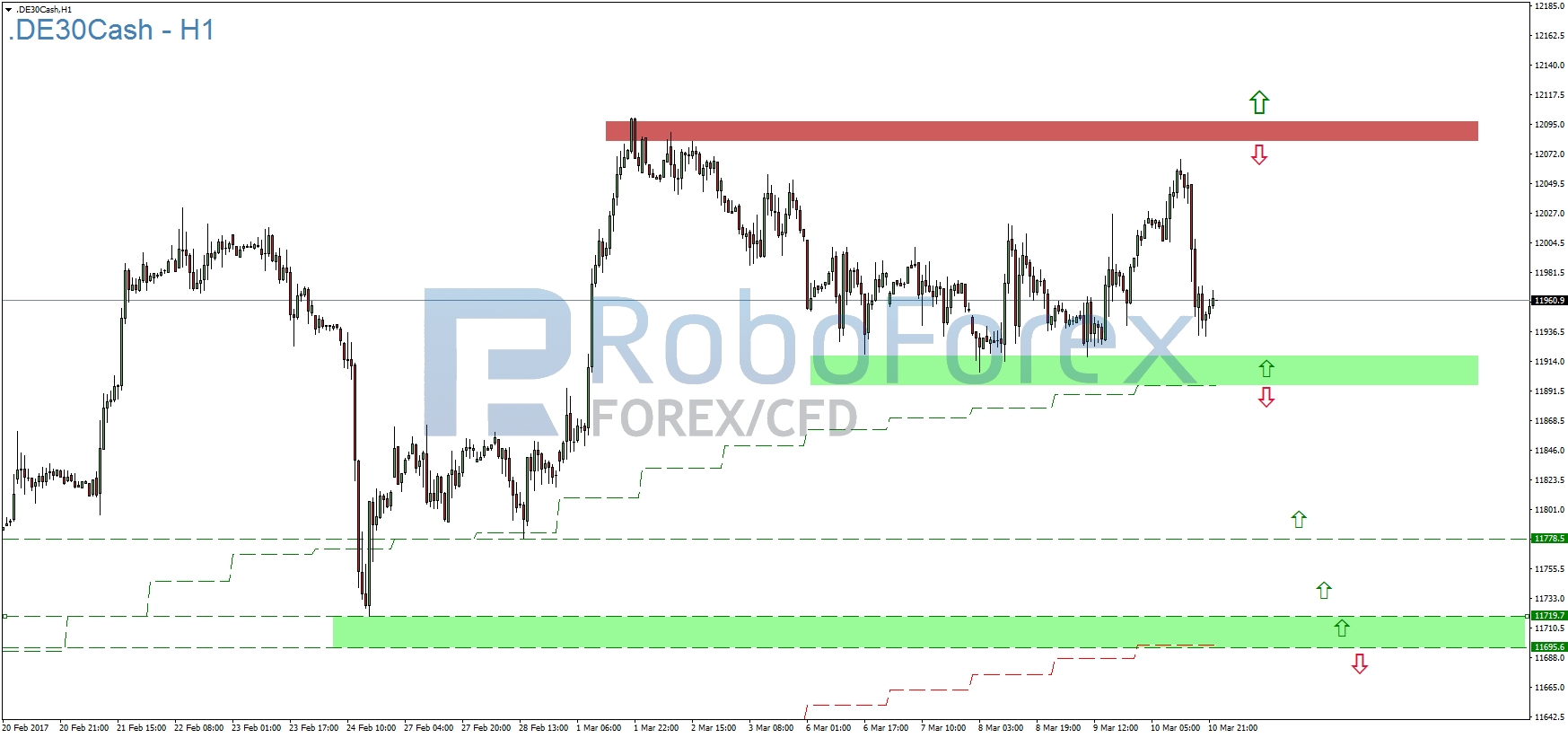 In den unteren Trendstufen sind beim deutschen Leitindex vor allem das Vorwochentief bei 11.905 Punkten und das Bewegungshoch vom 01. März bei 12.100 Punkten interessant. Seit Monatsbeginn notiert der DAX nun zwischen diesen beiden Handelsmarken.