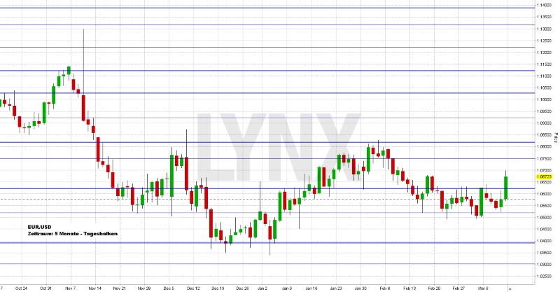 Die italienische Handelsbilanz für den Januar wird um 10:00 Uhr am Freitag den Handelstag einleiten. Um 11:00 Uhr folgt das Pendant für die Eurozone. Kanadische Industrieumsätze im Januar folgen um 13:30 Uhr, und um 14:15 Uhr die US-Kapazitätsauslastung und Industrieproduktion im Februar. Das Reuters/Uni-Michigan-Konsumklima für den März und der US-Leitindex seitens Conference Board für den Februar werden um 15:00 Uhr ausgegeben. um 18:00 Uhr wird die Anzahl der US-Ölbohrplattformen (Rig-Count) von Baker Hughes veröffentlicht. Zum Wochenschluss wird um CoT-Berichtder CFTC veröffentlicht. Die grafisch aufbereiteten COT-Daten bekommen Anleger auf der Seite Commitments of Traders Report von LYNX tagesaktuell zur Verfügung gestellt. Rund 50 Unternehmen berichten von ihren Quartals- und Jahresergebnissen, unter anderem Tiffany & Co. (US), Fraport (DE) und Eurazeo (FR).