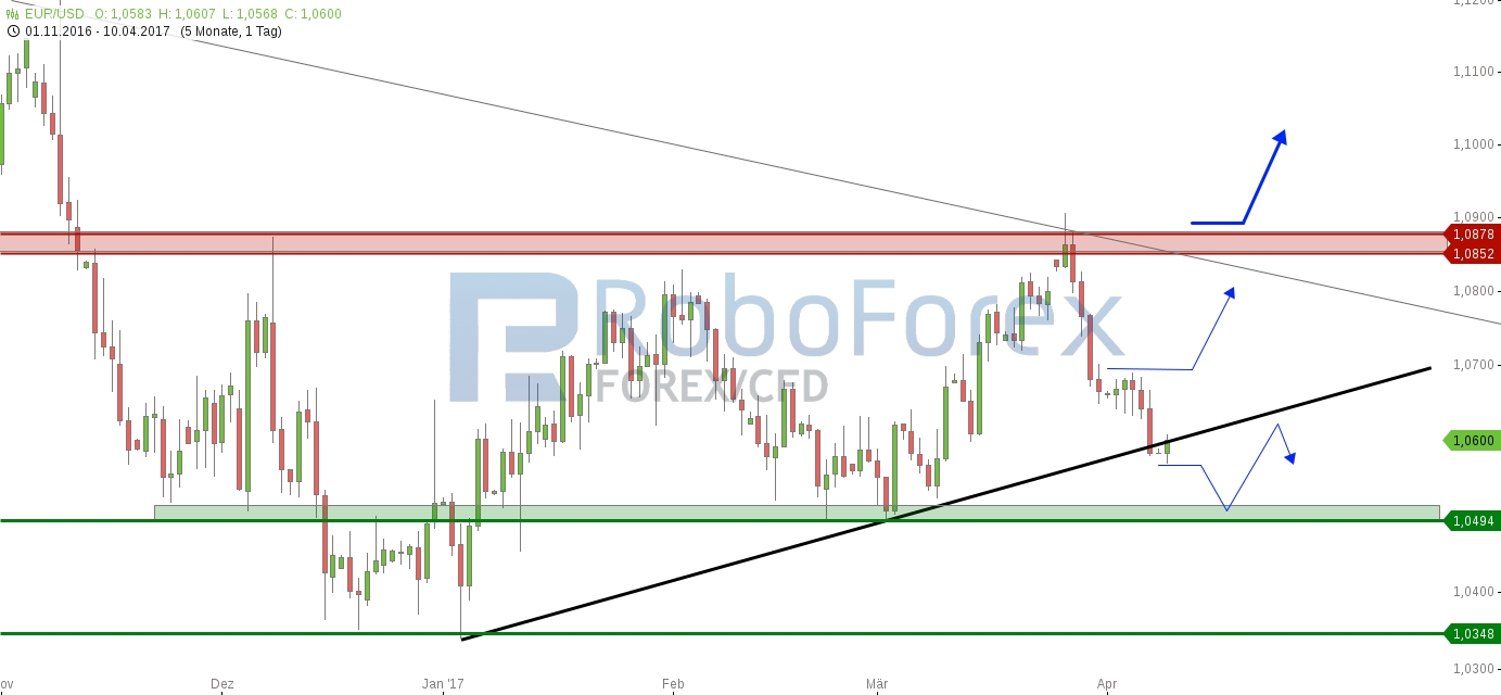 Übergeordnete Marktsituation EUR/USD 11. April 2017:
