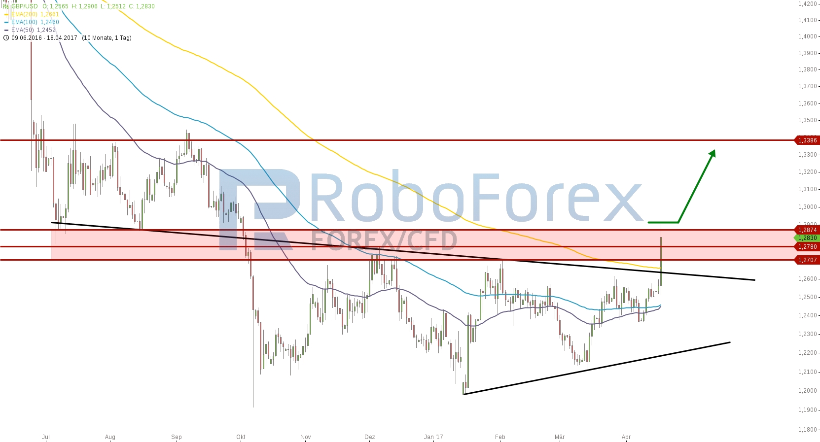 Eine Überraschung gab es am gestrigen Handelstag in Großbritannien und für den GBP. Die britische Premierministerin Theresa May kündigte überraschend Neuwahlen an. Sie begründete den Schritt damit, dass das Parlament sich uneinig über den geplanten EU-Austritt ihres Landes sei. „Das Land kommt zusammen, aber Westminster tut dies nicht“, sagte May. Ohne Einigkeit drohe Unsicherheit und Instabilität, Großbritannien brauche eine starke und stabile Führung. „Vom Brexit gibt es kein Zurück“, betonte May. Als Termin wurde zunächst der 8. Juni genannt.