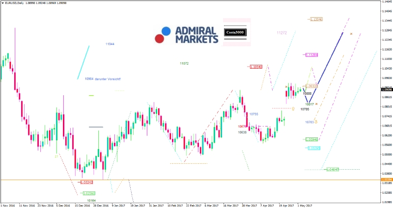 Nach wie vor wird der EUR/USD vom Ergebnis der ersten Runde der französischen Präsidentschaftswahl getragen. Sollte sich am Sonntag bestätigen, dass der Kandidat Emmanuel Macron die Wahlen gewinnt, dürfte dies weiter entlastend auf den EUR/USD wirken. Die US-Daten hatten am Freitag der vergangenen Woche wenig Einfluss. Am Mittwoch dieser Woche tagt die FED, um die US-Geldpolitik zu beraten. Wir gehen allerdings nicht davon aus, dass schon jetzt eine weitere Zinsanpassung vorgenommen wird. Dies könnte Ende des zweiten Quartals, vielleicht sogar noch später, geschehen. Die Wirtschaftsdaten geben aktuell keinen Anlass, die Zinsen zu erhöhen, denn das US-Wachstum im ersten Quartal war ernüchternd. Denkbar ist, dass die FED die weitere Entwicklung vorerst weiter abwarten wird.