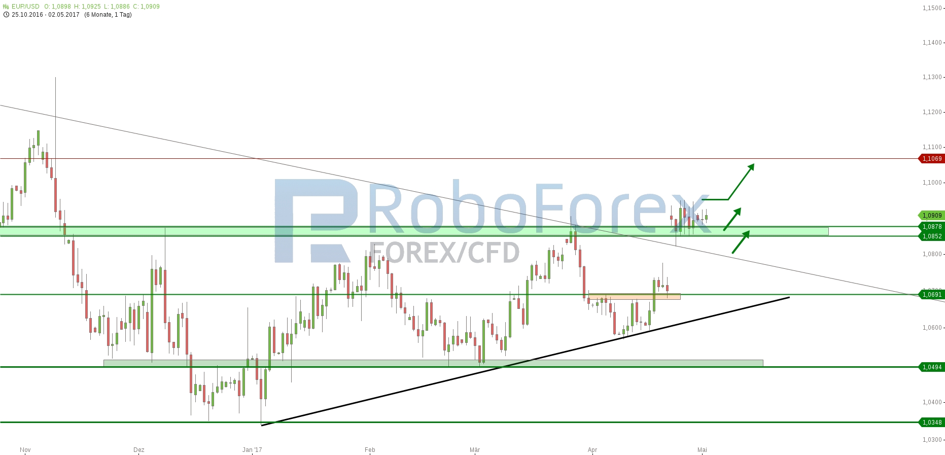 Übergeordnete Marktsituation EUR/USD 03. Mai 2017: