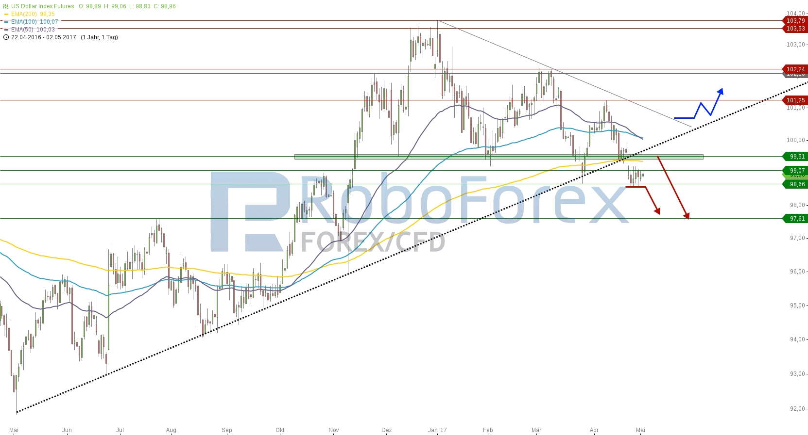 Übergeordnete Marktsituation US-Dollar Index 03. Mai 2017: