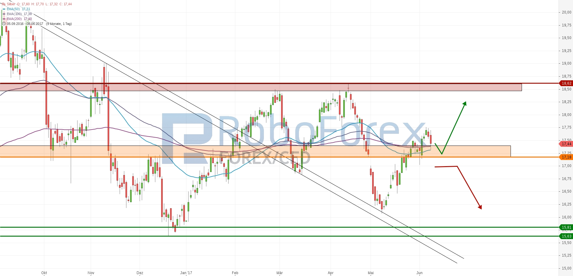 Sofern es Silber gelingt diese Unterstützungen zu verteidigen, ist auch ein Test der bisherigen Jahreshochs bei 18,50 USD/ 18,60 USD für die kommenden Wochen nicht auszuschließen. Sollte Silber allerdings erneut unter die psychologische Unterstützung bei 17,00 USD fallen, wäre dieses Szenario wieder ad acta zu legen und Anleger sollten den Blick wieder auf das vorangegangene Bewegungstief bei 16,07 USD sowie den übergeordneten Unterstützungsbereich zwischen 15,63 USD und 15,80 USD richten.