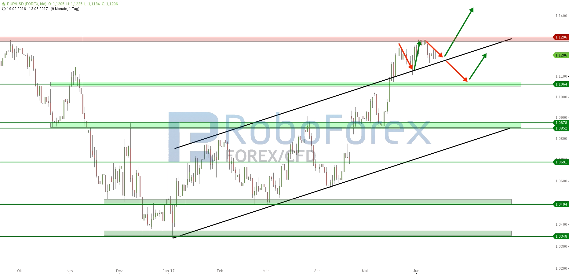 Allerdings wird auch hier der Ausgang der US-Notenbanksitzung für den weiteren Kursverlauf von entscheidender Bedeutung sein. Sollte sich das FED positiv im Hinblick auf weitere Zinsanhebungen äußern und der Markt damit gezwungen sein dieses Szenario verstärkt einzupreisen, dürfte ein bullishes Ausbruchsszenario zunächst vom Tisch sein und der EUR/USD in den Trendkanal zurückfallen.