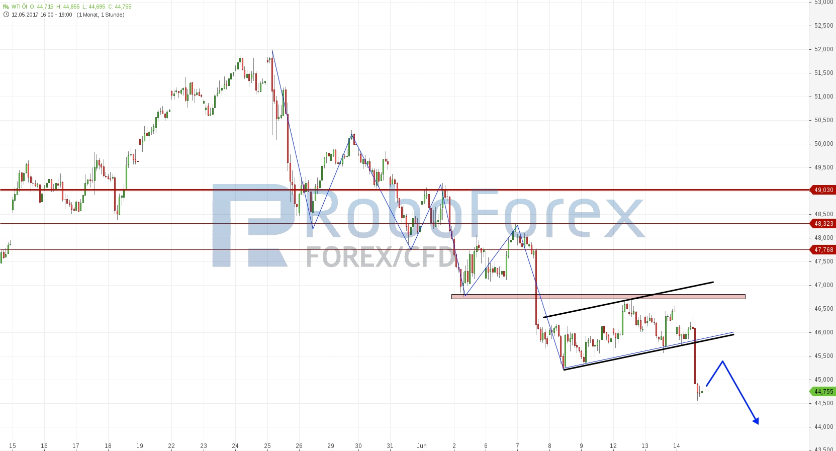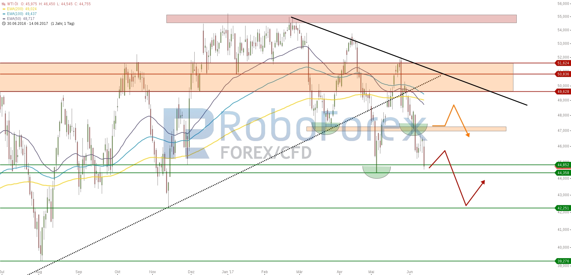 Übergeordnete Marktsituation WTI – 15. Juni 2017
