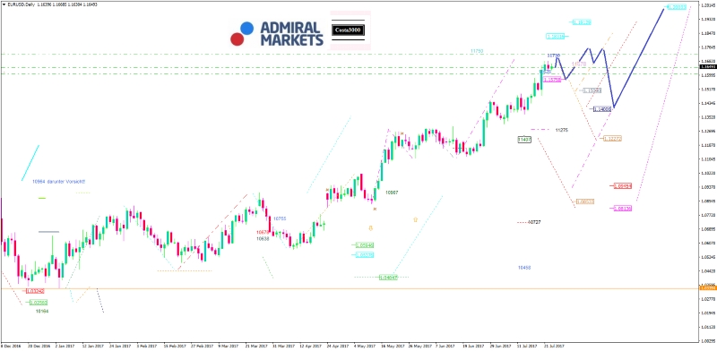 Zum einen ist es der Fed Zinsentscheid am Mittwoch und das US BIP am Freitag. Was die Zinsen angeht, so erwarten wir nicht, dass die Fed irgendwelche Maßnahmen ergreifen wird. Vielmehr wird es auf den Ausblick ankommen. Fed-Chefin Yellen hat in der jüngsten Anhörung vor dem Senat und dem Kongress bereits die Richtung vorgegeben. Interessant ist, dass der EUR trotz der steigenden Zinsen in den USA weiter zulegt. Dies müsste eigentlich umgekehrt sein. Eine Begründung mag in der politischen Situation in den USA zu suchen sein. Die Trump Administration hat in den letzten 6 Monaten nicht wirklich viel auf den Weg gebracht, bzw. anders ausgedrückt, wenig von den Versprechungen umgesetzt. Die aktuelle Russland Affäre köchelt weiter und lähmt das poltische Handeln der Regierung. Am Freitag wird sich dann auch zeigen, inwieweit die neue US Regierung wirtschaftlichen Erfolg hat, wenn die erste Schätzung für das US BIP für das 2. Quartal veröffentlicht wird. Abhängig von dem Wert könnte es beim EUR eine größere Vola geben. Darüber hinaus dürfte das aktuelle Niveau auch nicht im Interesse EZB sein, da es die Wettbewerbeskraft der EUR Länder einschränkt.