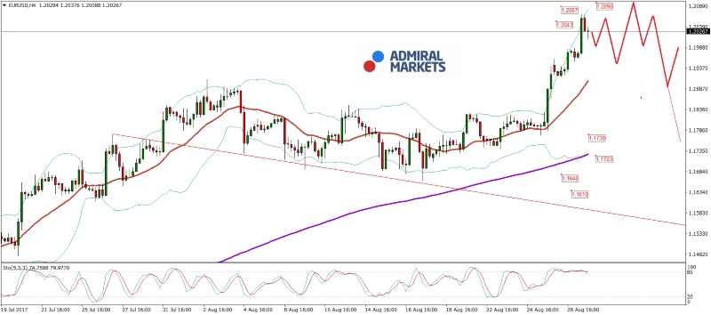 Wie bereits befürchtet, brachte Jackson Hole keine Besonderheiten ans Licht. Die weisen Herren der größten Zentralbanken der Welt haben wenig Mut zu weiteren geldpolitischen Schritten gezeigt. In der Zwischenzeit rückt die geopolitische Arena immer mehr ins Rampenlicht. Die etwas mäßige Reaktion des Weißen Hauses auf die nordkoreanische Rakete über Japan war unter anderem dafür verantwortlich, dass das Paar gestern ein Zwei-Jahres-Hoch erreichte. Die Zwickmühle, in die Donald Trump reingeraten ist, ist wohl kaum zu beneiden. Denn ungeachtet dessen, ob das Säbelrasseln nur mündlich weitergeht, oder ein Präventivschlag kommt, die Risiken rund um die USA steigen, was mittelfristig die Flucht aus dem US Dollar bedeutet kann. Ob dies so wird, wird sich zeigen.